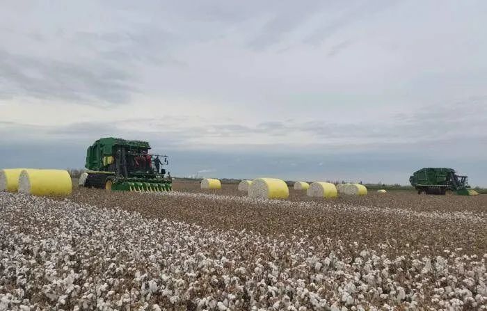 塔城水發(fā)農(nóng)業(yè)發(fā)展有限公司年初根據(jù)公司經(jīng)營發(fā)展,采用“公司+合作社+農(nóng)戶”的方式在塔城地區(qū)沙灣市老沙灣鎮(zhèn)包家莊村流轉(zhuǎn)7000畝農(nóng)用地用于種植棉花,現(xiàn)進(jìn)入采收時節(jié),當(dāng)?shù)睾献魃缏?lián)系采棉機(jī),開足馬力采收棉花,確保棉花及時、高效采收,預(yù)計(jì)10月底采收完畢。